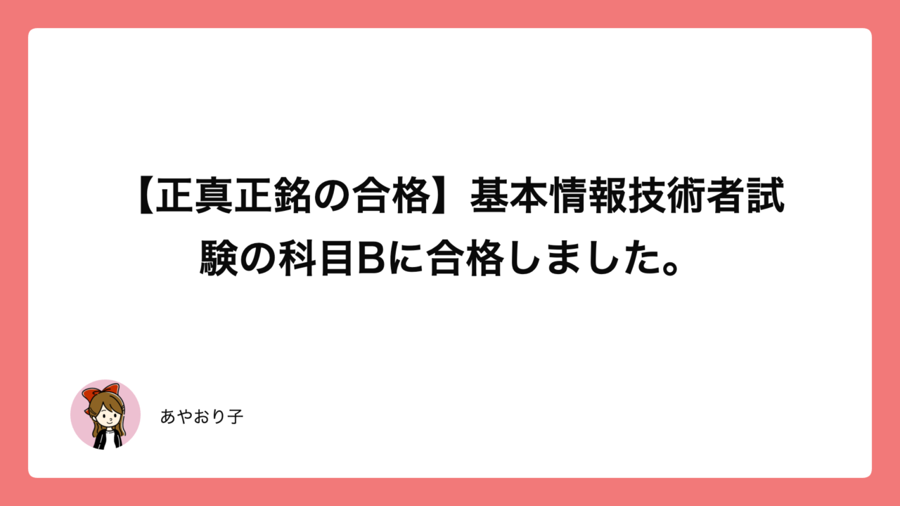 【正真正銘の合格】基本情報技術者試験の科目Bに合格しました。